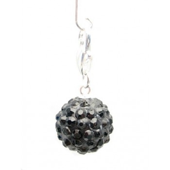 Flot sort kugle, på 14 mm med sten. Kuglen har karabin hagelås i sølv plate, i alt 30 mm. Vedhæng der kan bruges i forbindelse med vedhæng der har karabin hage låse.