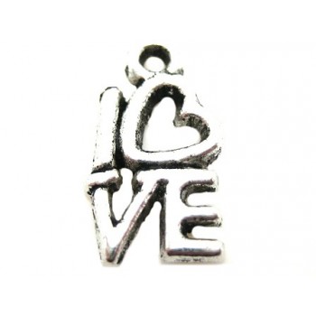 Charm i tibetansksølv “LOVE” med hjerte, charmsen er 16 x 8 mm, sød i øreringe, halskæde vedhæng eller på dit armbånd.