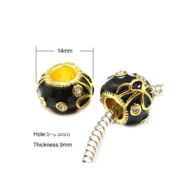 Flot led med sort emalje og sten i guld, ledder er i messing, og måler 14 x 9 mm med 5 mm hul. Et luksus led i super kvalitet.